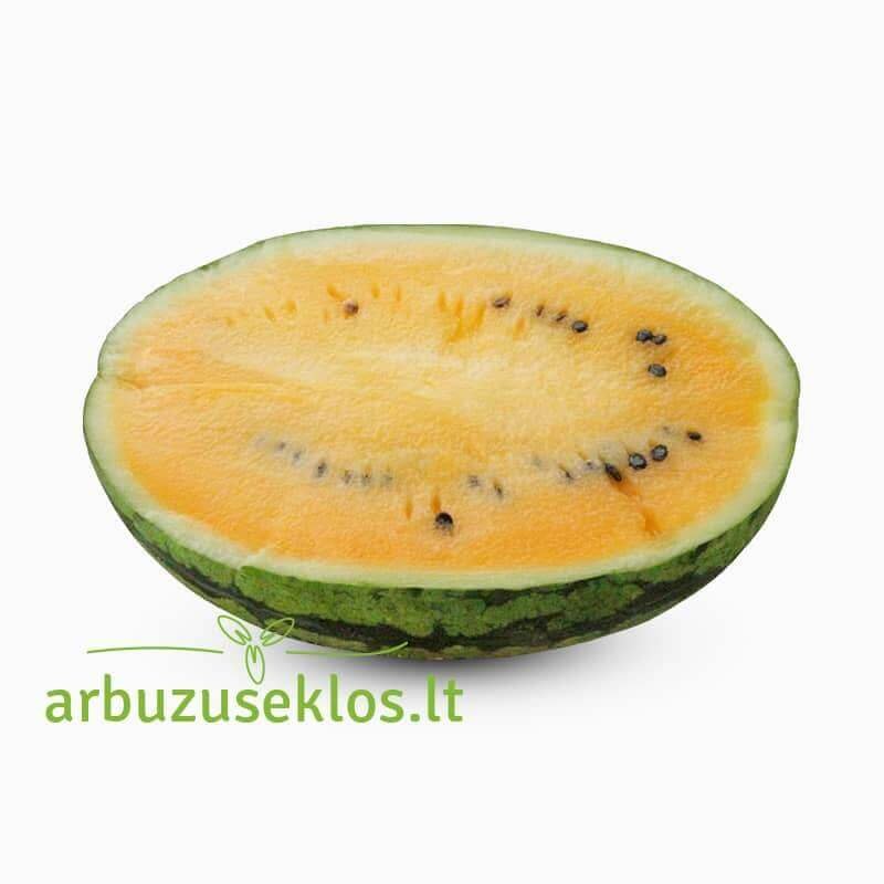 Honney F1 – arbūzas geltonai oranžiniu vidumi. Vienas iš saldžiausių, kokį tik teko ragauti. Vidutiniškai užaugo iki 1,5 – 2,5 kg. Vedė po 2 – 3 vaisius ant augalo. Labai plona žievelė, reikia stebėti, kad nepernoktų, bet susivalgo iki pat žievelės.